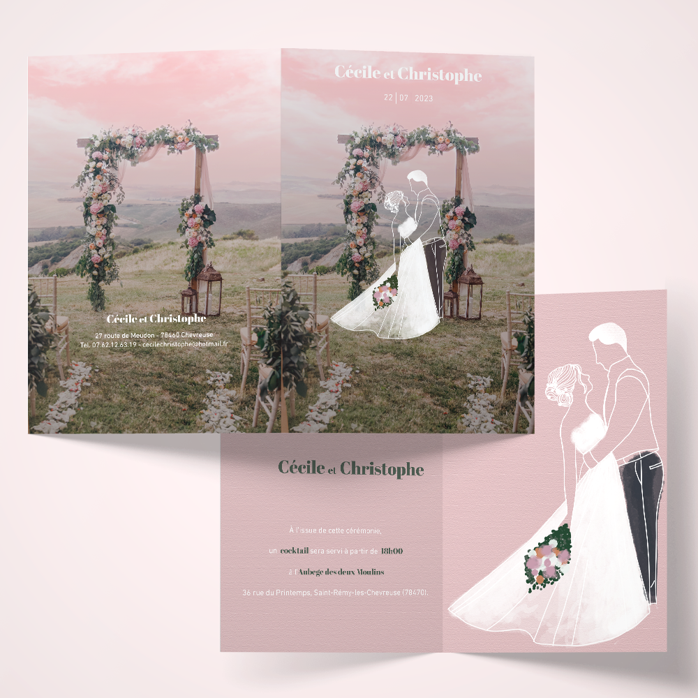 Et pour une parfaite harmonisation, composez votre gamme de papeterie sur ce même modèle avec les Invitations Diner/Brunch, Menu, Livret de messe, Marque-place, Carte de remerciements, Mini-album photos, Urne…