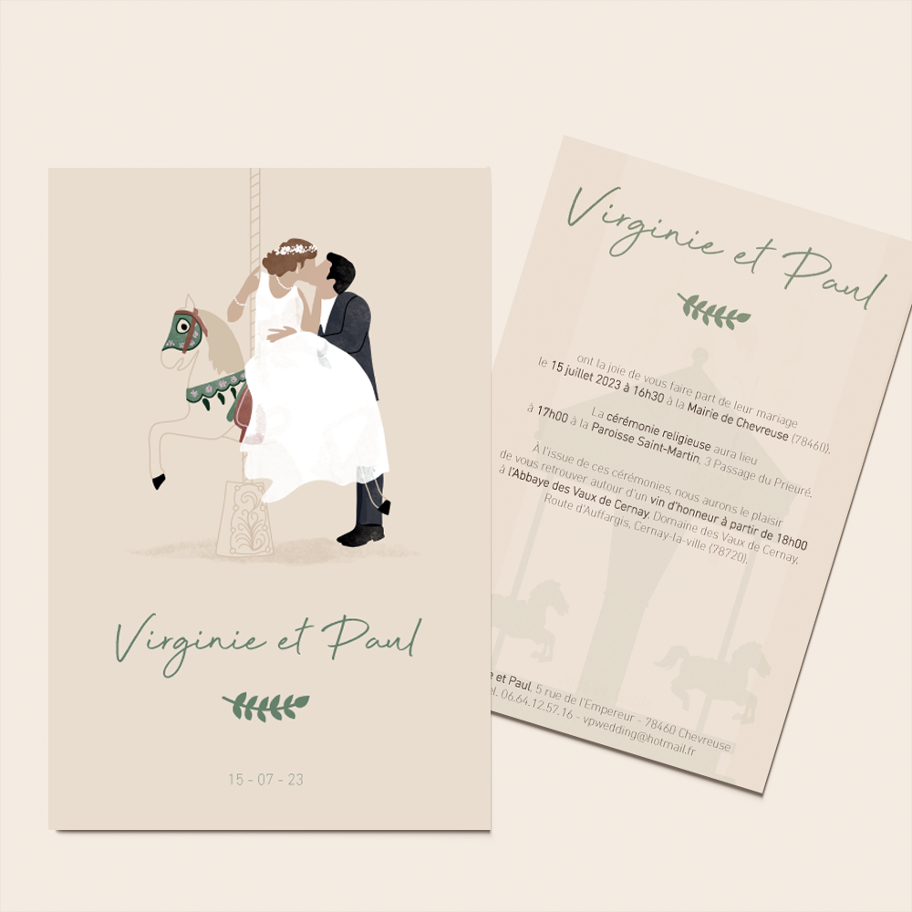 Fantaisie, tendance et singularité... Invitez vos proches et vos amis avec le faire-part de mariage « Carrousel » de la Collection