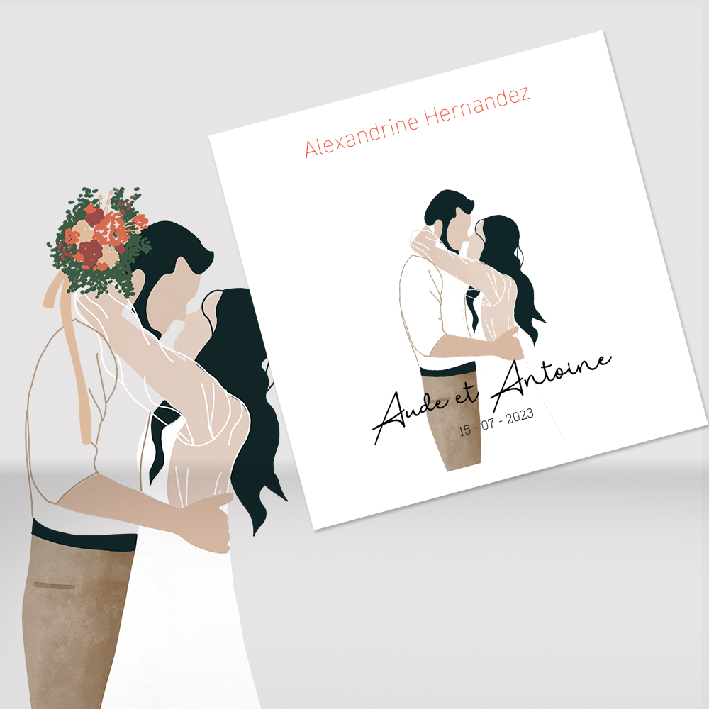 Pour une parfaite harmonisation, composez votre gamme de papeterie sur ce même modèle avec le Menu, Plan de table, Marque-table, mais également Faire-part, Carton d’invitations Diner/Brunch, Livret de messe, Panneau de bienvenue, Carton de remerciement, Mini album-photos, Urne…