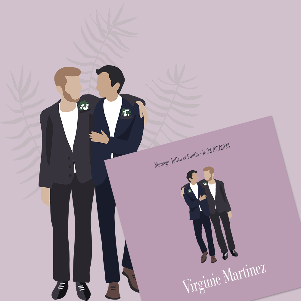 Marque-place assorti au faire-part. Un seul ou plusieurs modèles différents pour distinguer les hommes des femmes.