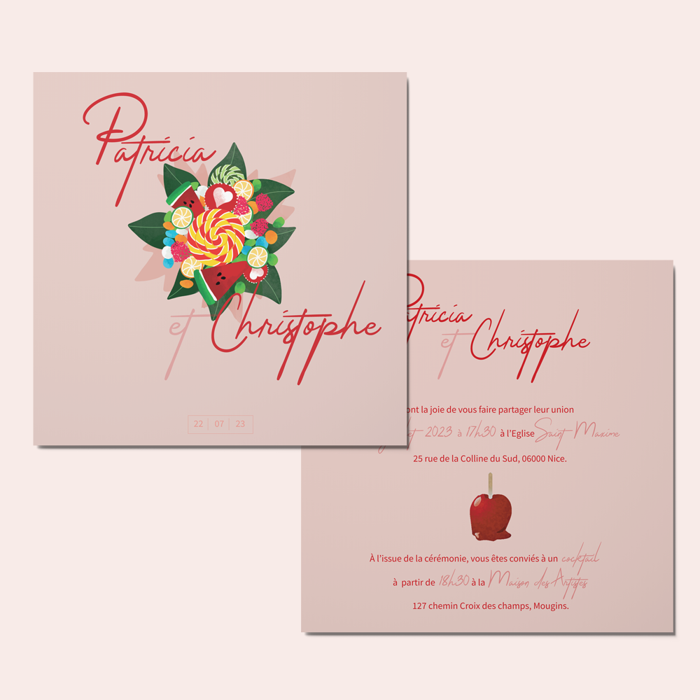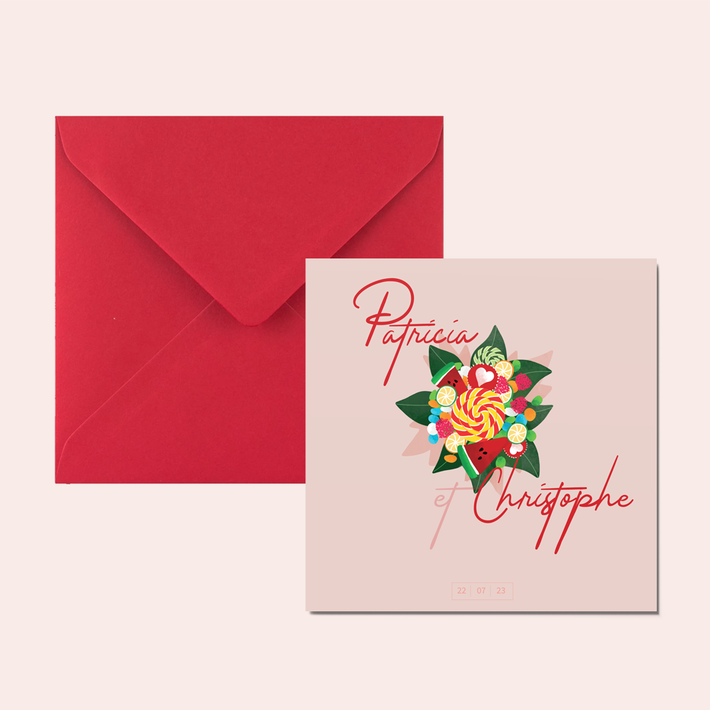 Gluttony, originality and sweetness ... Invite your loved ones with the "Candy" wedding invitation from the "Bouquet" Collection. They will be won over by its originality, lightness and delicate graphics.