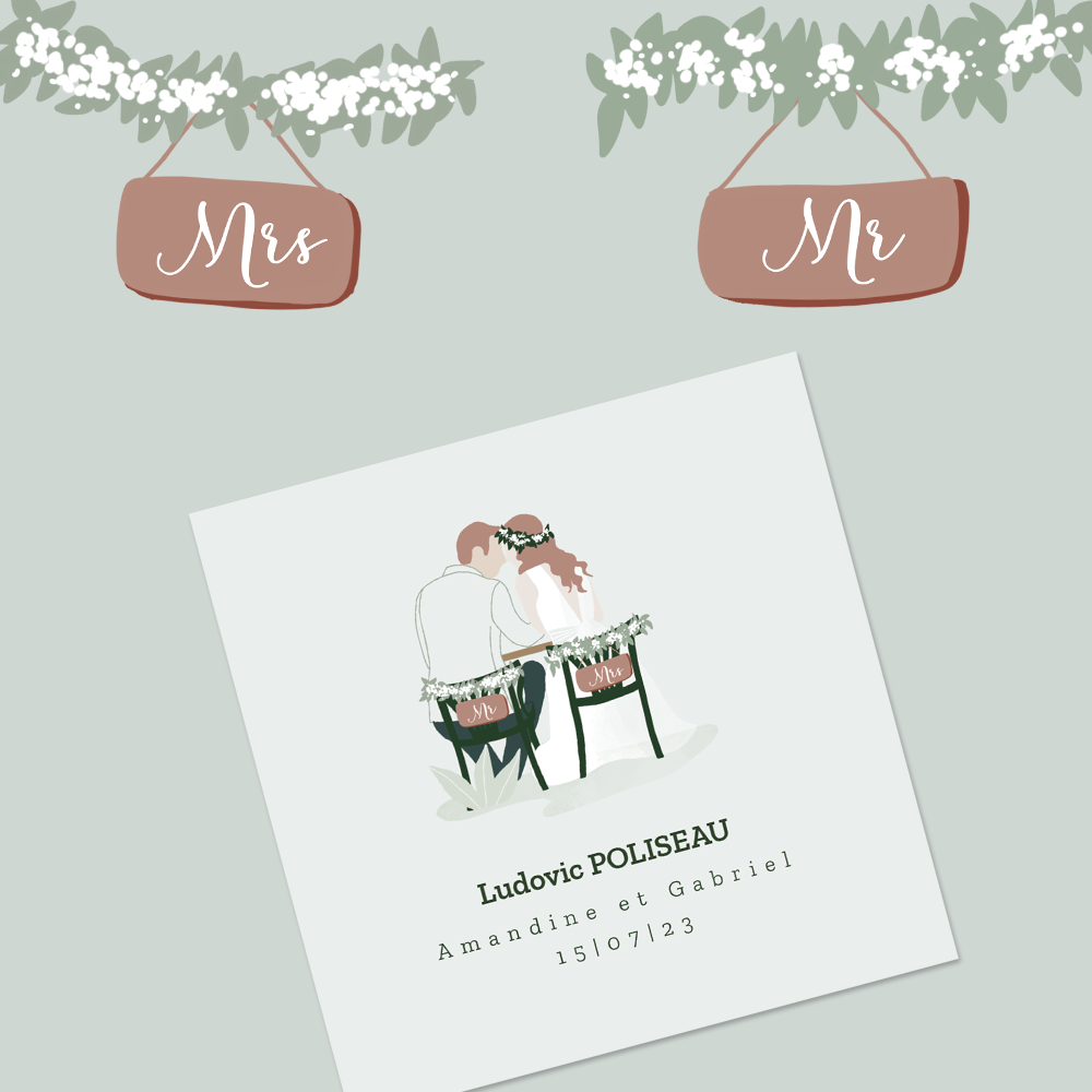 For a perfect harmonization, compose your stationery range on this same model with the Menu, Table plan, Table marker, but also Invitation, Dinner / Brunch invitation card, Mass booklet, Welcome sign, Thank you card, Mini photo album, Ballot box ...