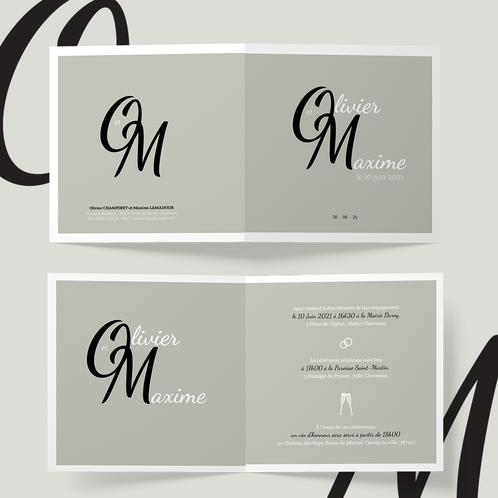 Complicity, originality and festivity... Invite your loved ones with the "Initiales" wedding invitation from the "To be a man" Collection. They will be won over by its originality, lightness and delicate graphics.