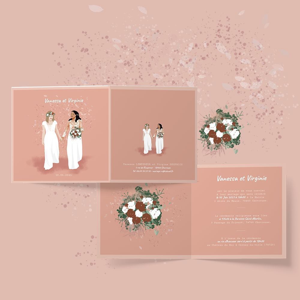 Complicity, originality and sweetness ... Invite your loved ones with the "Pétales" wedding invitation from the "To be a woman" Collection. They will be won over by its originality, lightness and delicate graphics.
