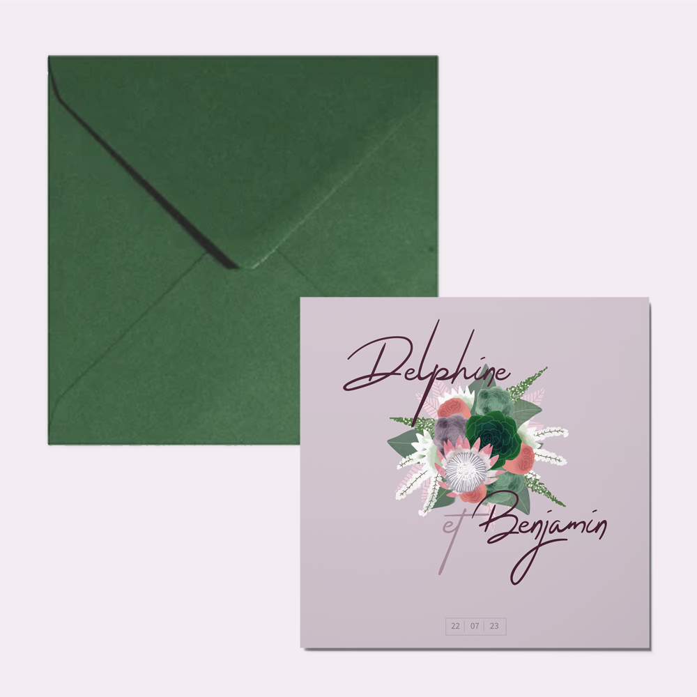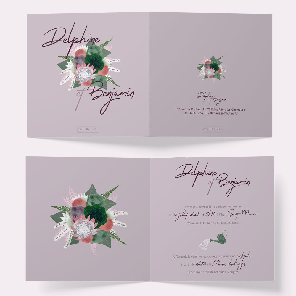 Charm, authenticity and sweetness ... Invite your loved ones with the "Succulentes" wedding invitation from the "Bouquet" Collection. They will be seduced by its personality, elegance and delicate graphics.